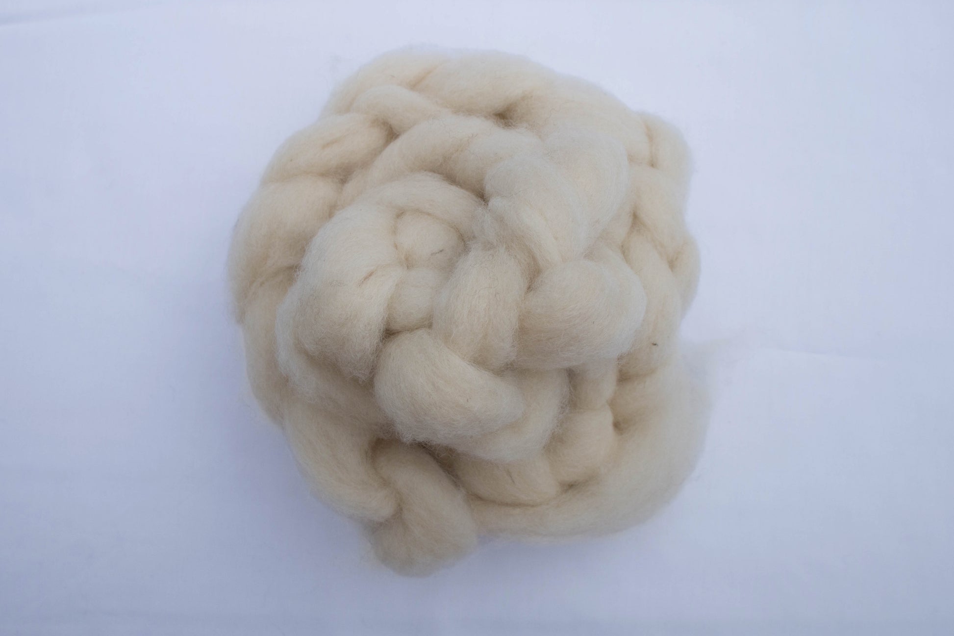 100 g Zopf aus natürlicher weißer Wolle von einheimischen BFL-Schafen, die auf Vancouver Island, BC, gezüchtet werden.